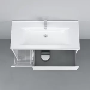 Меблі AM.PM X-JOY – сучасний європейський дизайн в стилі мінімалізм. Комплект меблів оснащений зручною і функціональною керамічною раковиною з глибокою чашею. Максимально зручні інтегровані в фасад фрезеровані ручки. Трендова комбінація білих глянцевих фасадів і вставок антрацит. Покриття в 7 шарів поліакриловими емалями захищає меблі від впливу вологи і підтримує первісний колір продукту протягом усього терміну…