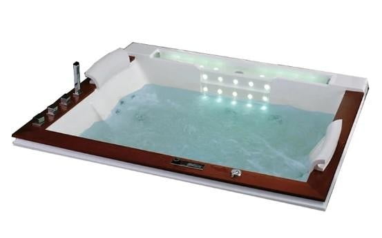 Дана модель ванни комплектується системою гідромасажу та аеромасажу, підігрівом води, системою водоспаду з LED підсвічуванням. Насоси в гідромасажній ванні працюють практично безшумно, обробка країв ванни виконана з натурального дерева. Ванна має значний об’єм, виконана з товстого листового акрилу і має потужний каркас з нержавіючої сталі.
