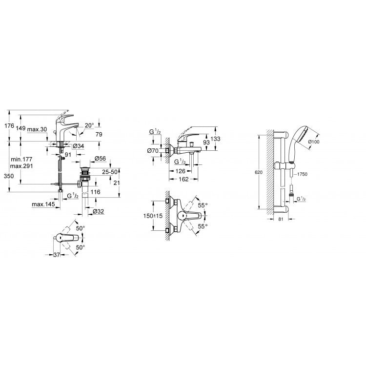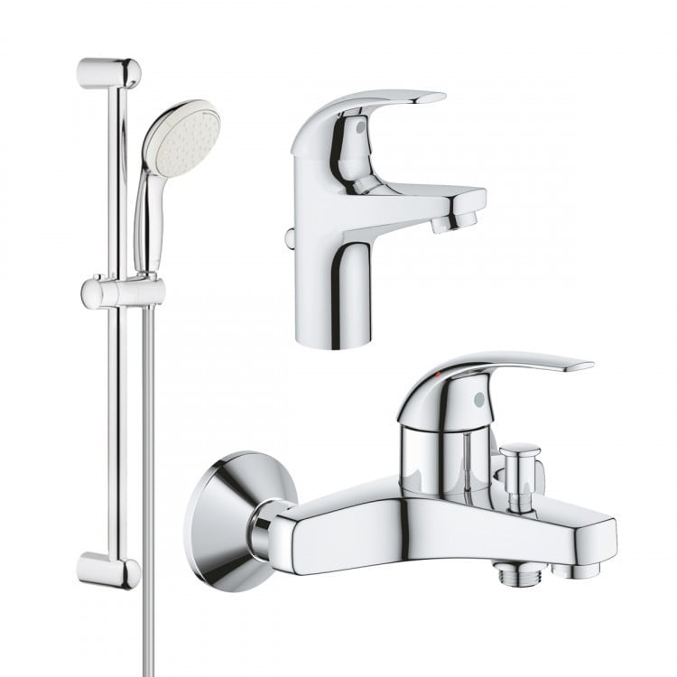 Особливості набору змішувачів для ванної Grohe Curve з душовим гарнітуром New Tempesta Classic, хром