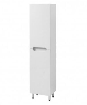 Підлоговий пенал – це оригінальне рішення для ванної кімнати. Лаконічний дизайн у поєднанні з підвісною конструкцією меблевого виробу візуально розширює простір ванної кімнати. Пенал шириною 35 см практично не займає місця за площею, його основний корисний об’єм розподілений за висотою. Для зберігання ванної кімнати є два великих відділення і висувна скринька. Фурнітура надійного австрійського бренду Blum. Скринька пеналу часткового висування на телескопічних напрямних з функцією самодотягування. Двері навішені на петлі з доводчиками, що забезпечує плавне закривання. Корпус по торцях оброблений кромкою ABC. Матеріал корпусу ДСП, фасад виготовлений із МДФ. Всі поверхні, після попередньої ґрунтовки, проходять фарбування двокомпонентною глянсовою емаллю Sayerlack (Італія). Меблевий виріб вологостійкий і призначений для використання у ванній кімнаті.