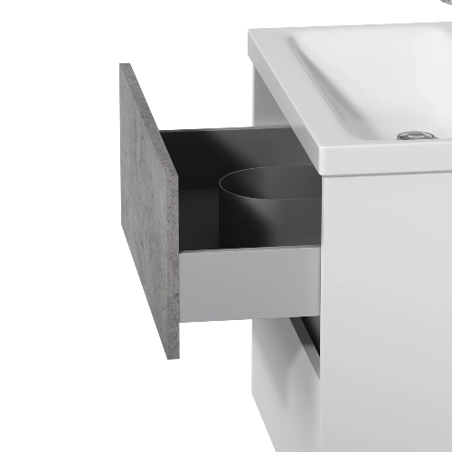 Напрямні прихованого монтажу Hettich із системою м’якого закривання soft close. Покриття 7 шарів поліакриловими емалями захищає меблі від впливу вологи і підтримує початковий колір продукту протягом усього терміну служби. Підвісна конструкція виглядає ефектно і вимагає меншого часу для прибирання.
