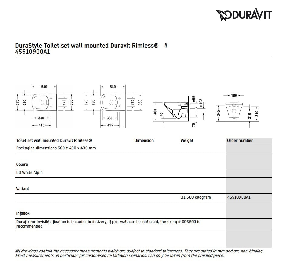 • в комплекті з унітазом йде сидіння з кришкою і кріплення Durafix для прихованого монтажу