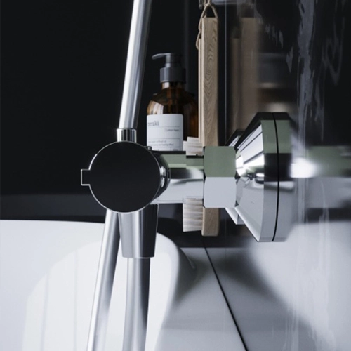 Сучасний змішувач для душу приємно здивує вас своєю функціональністю та інтуїтивно зрозумілим способом керування. Займаючи мінімум простору змішувач здатний забезпечити найкраще прийняття душу щодня. Термостатичний картридж із високочутливим термоелементом та швидкою реакцією на зміни температури або тиску у водопровідній мережі надійно захищає від опіку навіть при раптовому відключенні холодної води. Налаштуйте температуру води на свій смак і використовуйте ці налаштування при кожному прийнятті душу, натиснувши одну кнопку на змішувачі. Інноваційне покриття High Gloss знизить появу розлучень від води на поверхні та збереже ювелірний блиск продукту.